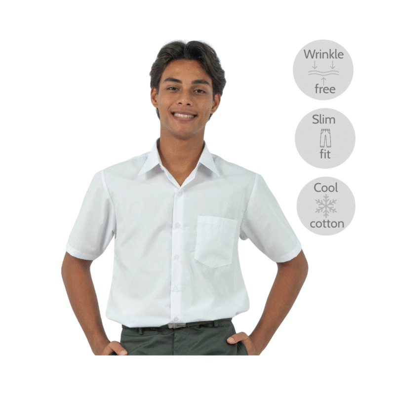 Cotton Slim Cut White Short Sleeve Shirt